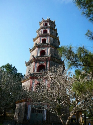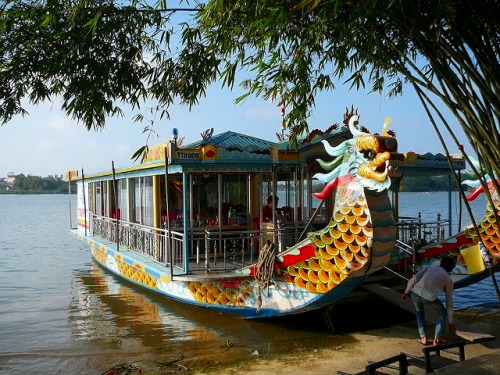 旧市街の王宮を散策した後,「チェンムー寺」というフォー川沿いにある七層八角形の塔のある禅宗のお寺を訪ね, ここからフォー川を観光船でゆったり40分ほど遊覧,新市街のホテルレストランで「宮廷料理」の夕食をとり,再びバスに揺られ て,「スーパースター・アクエリアス」へ戻った。