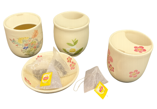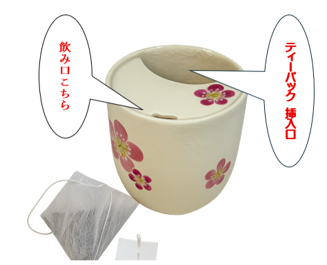 ![]() 絵柄は伝統の秋草・お茶の花・紅梅の 3種類から選べます。 ティーパックをポィと入れて、すぐ飲める。 |