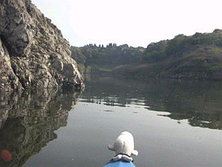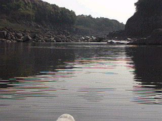 | 更に漕ぎ上るともう曽木の滝が遠望でき、滝の音も聞こえます。上流側からの眺めです。 |
