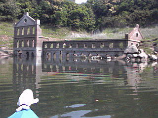 | 昨日と違う切羽詰った訳もあって、再び発電所跡まで漕ぎ上って来ました。もう霧は取れていました。 |