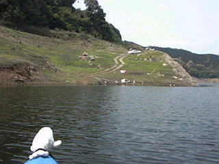 | デジカメ・カセットレコーダー・MD・ザウルスetc.の充電池を充電しながらカーTVやラジオをつけていました。 暑くも寒くも無かったので、ついぞエンジンをかけることは無かったのです。夜が明けてキーを回すと、 既に事切れていました。PCのように逆送も出来ず、携帯も通じないのでカヌーで漕ぎ上った訳です。(反省) |